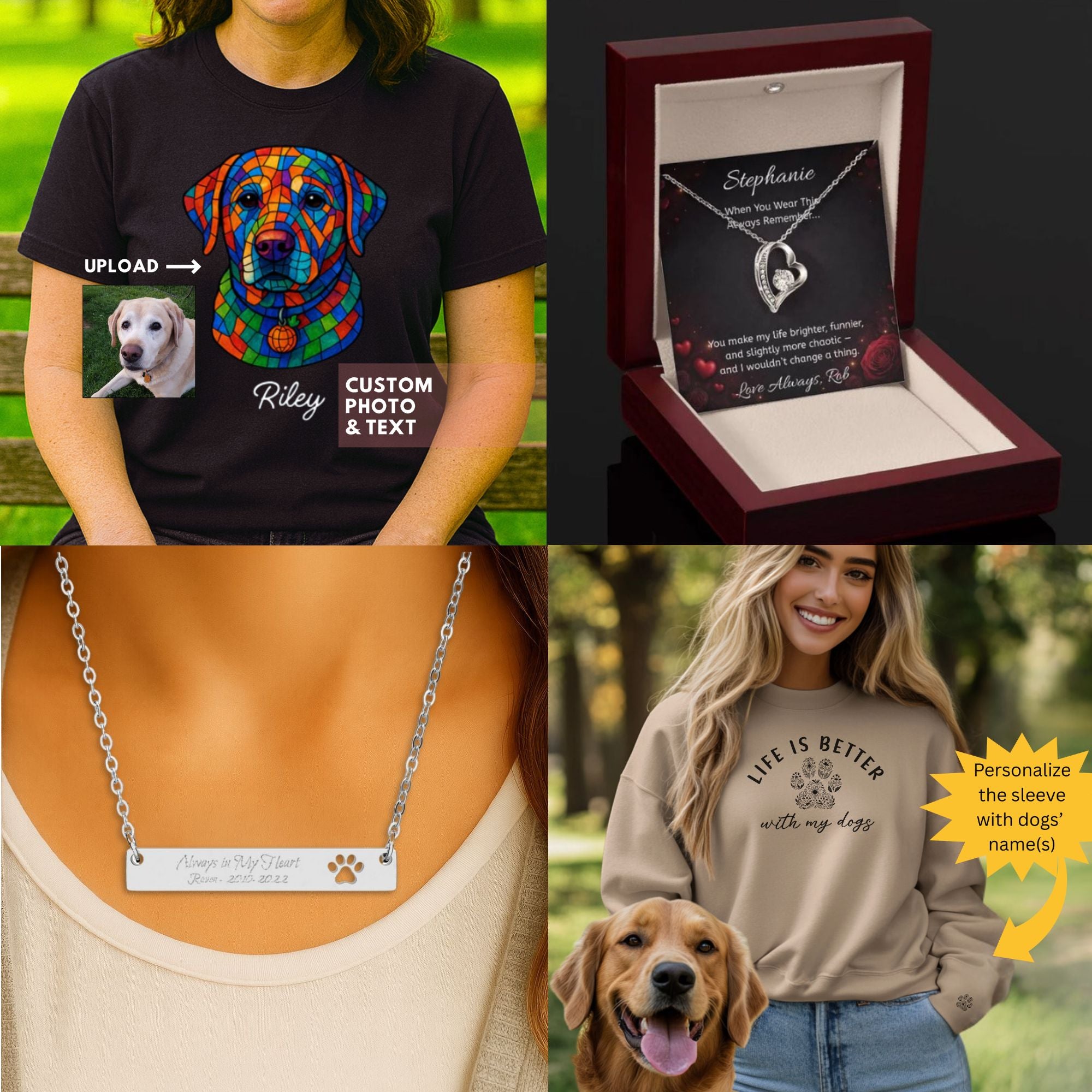 We sell whimsical, heartwarming, pet‑centric gifts and apparel with an emphasis on witty, animal‑inspired designs for pet lovers and other gift seekers shopping for a unique gift for their loved one so they can make their special occasion memorable with a playful, heartfelt touch.